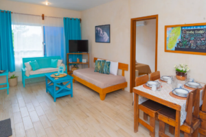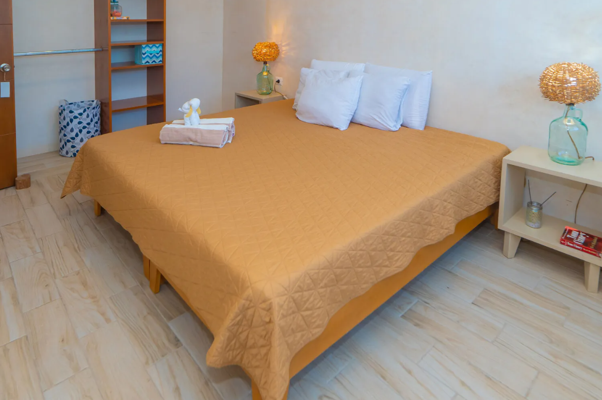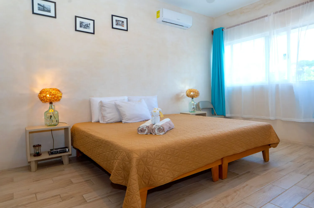 •   Second bedroom with a King Size bed, air conditioning, and ceiling fan.The social areas include a dining room with ceiling fan and a living room with a single bed and ceiling fan, ideal as an additional resting space. There is one comfortable bathroom.